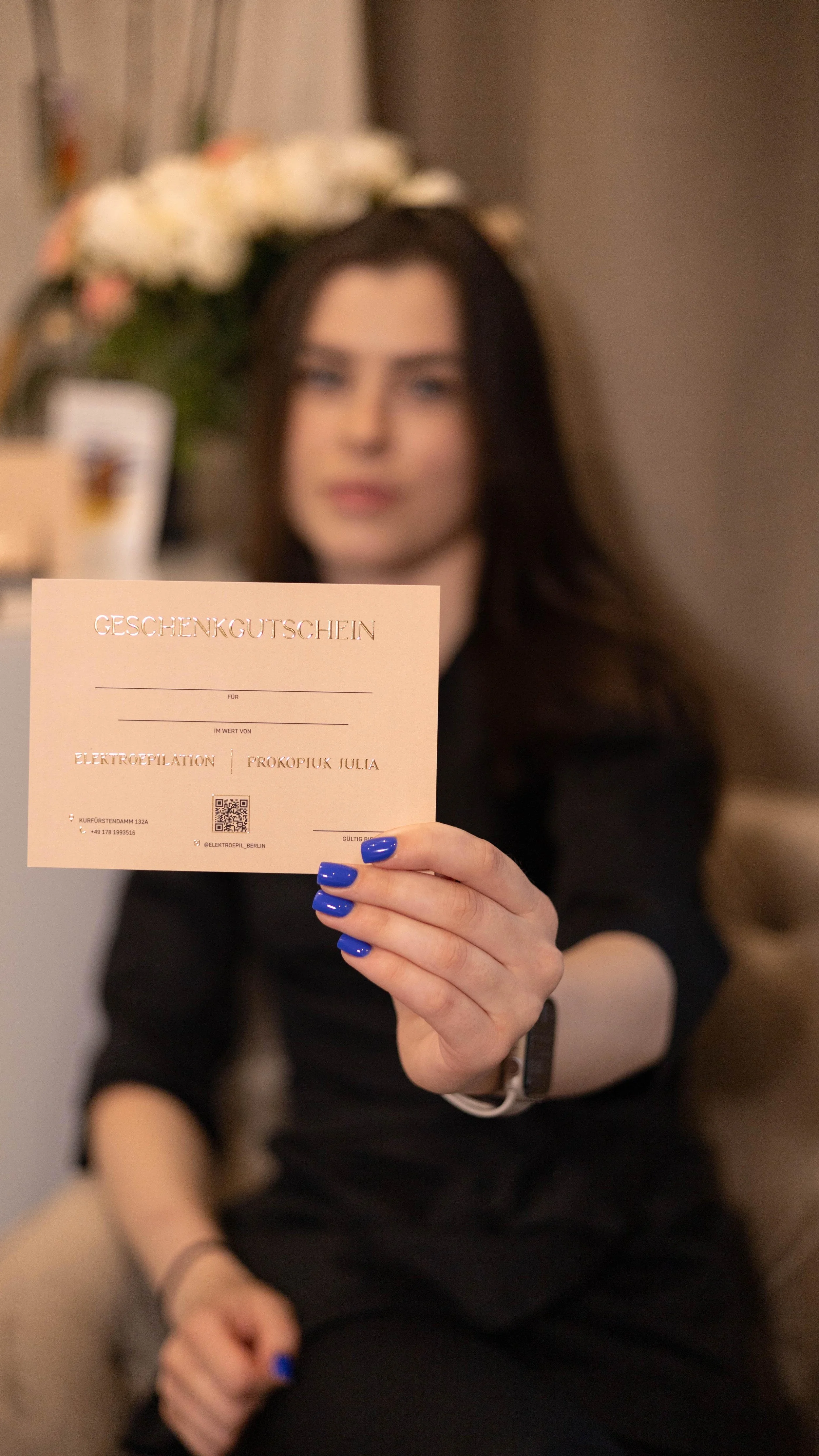 Hallo! Mein Name ist Julia und ich bin eine zertifizierte NiSV bei der APV-Zertifizierungs GmbH Elektroepilationsmeisterin in Deutschland. Ursprünglich aus der Ukraine und habe eine zweijährige Erfahrung im medizinischen Bereich sowie einen Abschluss in "Heilkunde" mit der Qualifikation "Sanitäter".